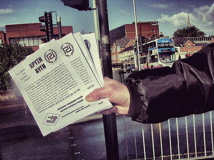 Kolejna akcja uliczna NOP Division England. Tym razem działacze Narodowego Odrodzenia Polski pojawili się na ulicach Norwich prowadząc działania informacyjne nt. NOP (to dla miejscowych Polaków) oraz na rzecz represjonowanych działaczy greckiego Złotego Świtu. Dała się zauważyć czujność rewolucyjna idiokratów - "życzliwi" nasłali na nacjonalistów policję. Mundurowi, którzy próbowali zniechęcić NOPowców, zostali pouczeni o legalności akcji (zgodnej z prawem brytyjskim) a na pocieszenie dostali ulotki "Freedom for Golden Dawn".